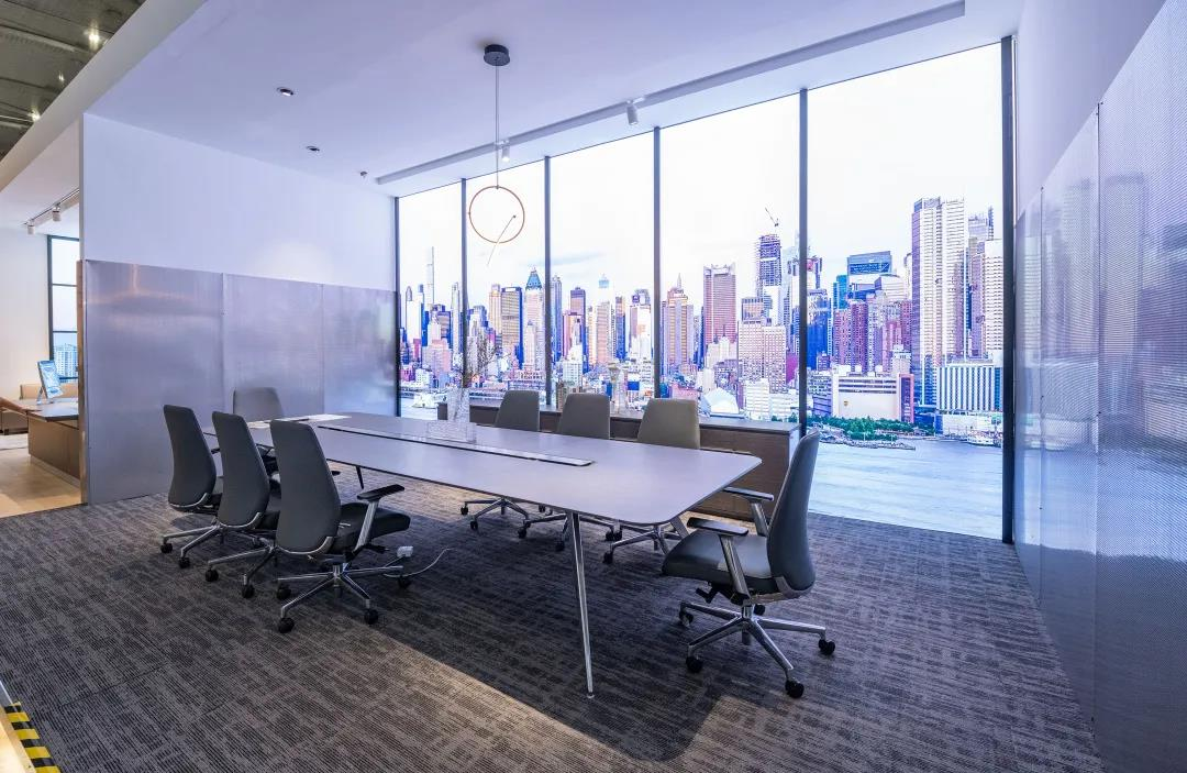 前厅以“开阔、聚焦”为出发点,营造了展馆开放、创意、舒适的办公氛围。一半封闭,一半玻璃墙,以一种“犹抱琵琶半遮面”的形式呈现。