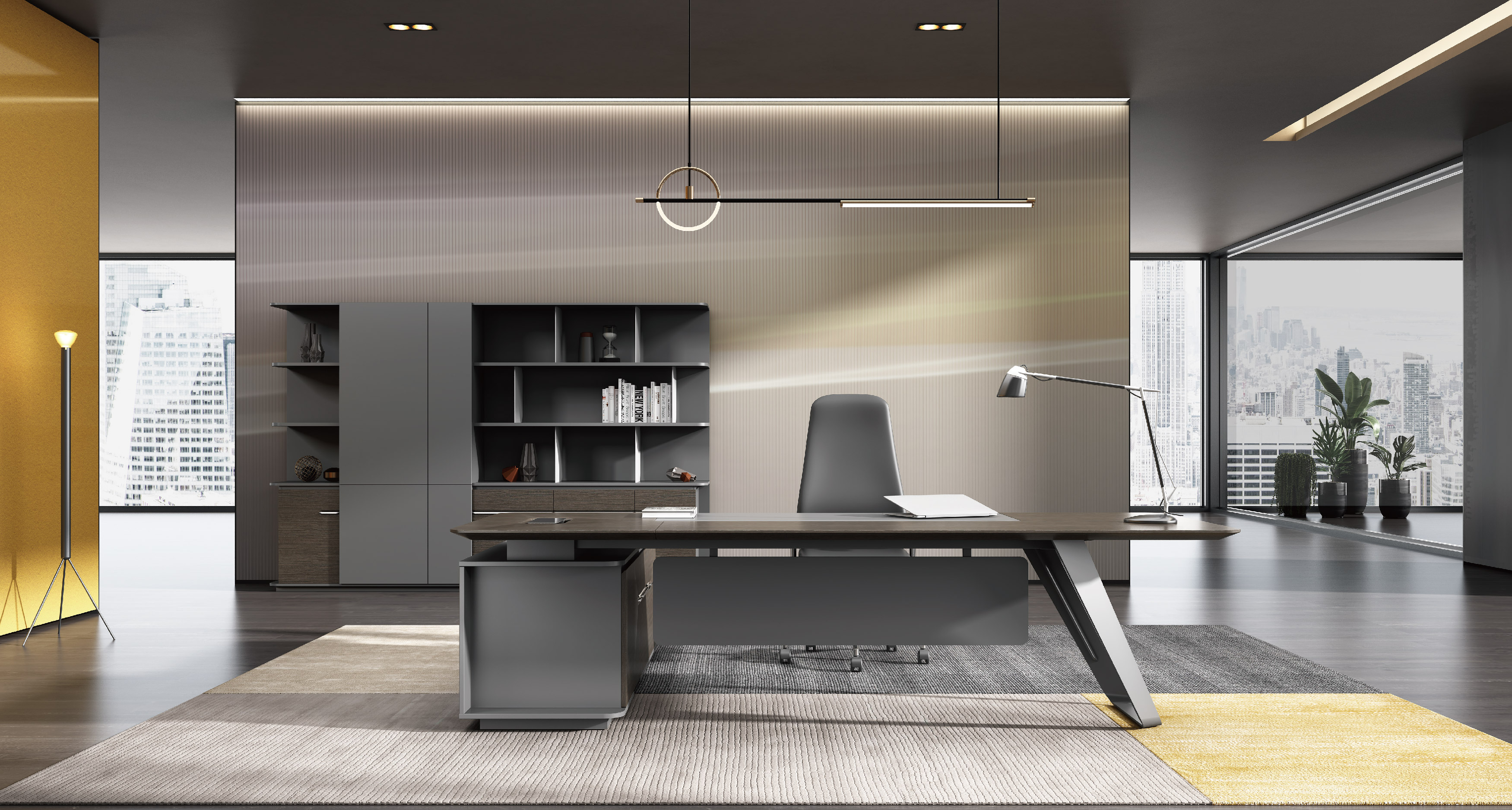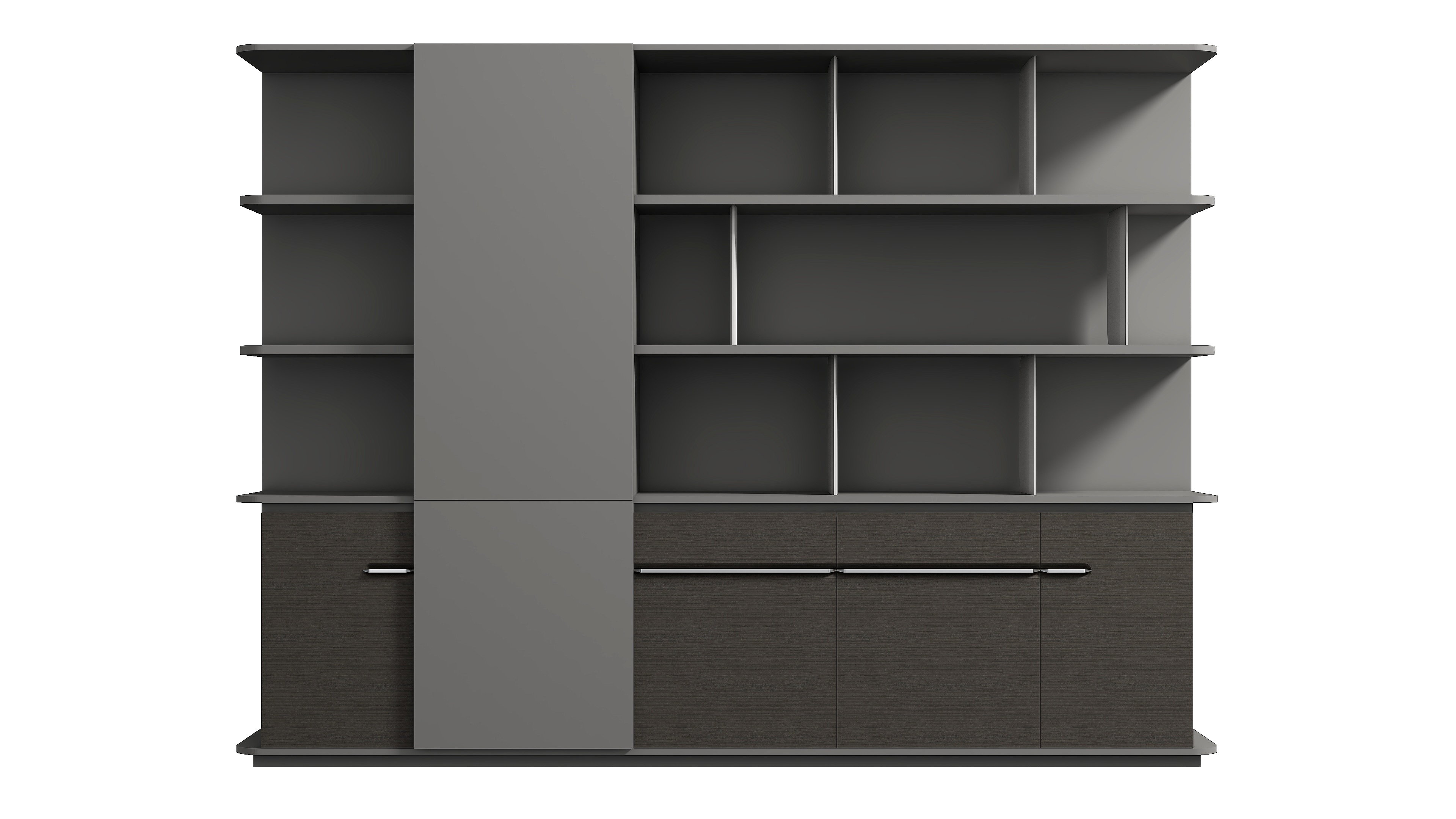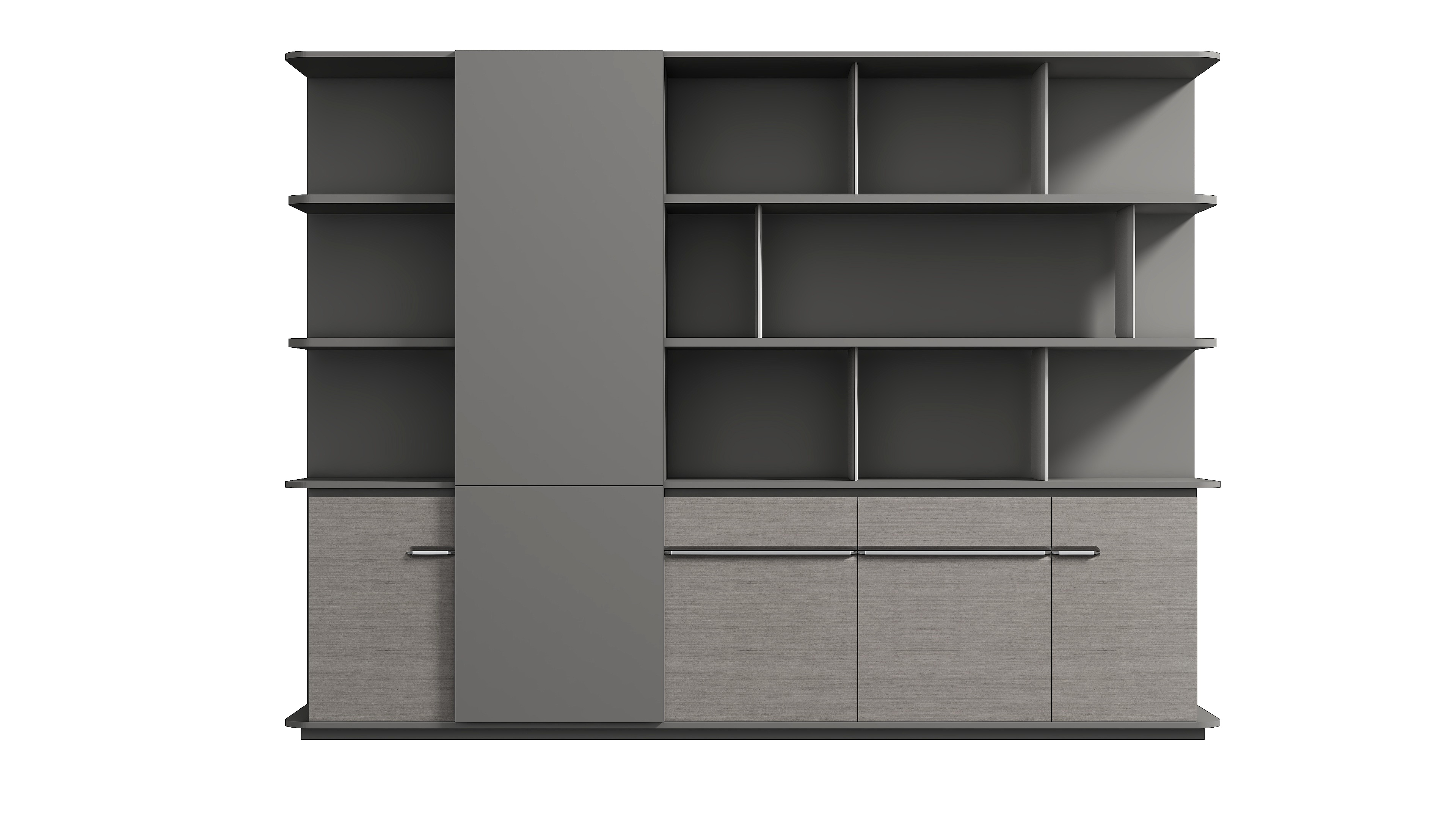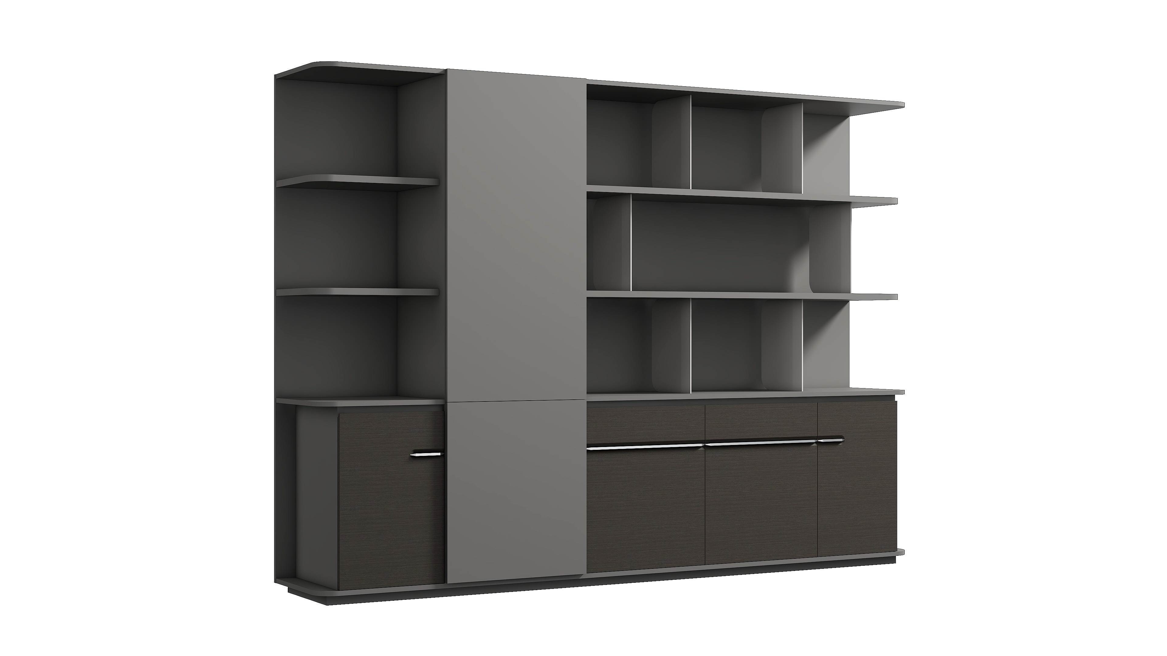 曲韵一样悠扬婉转,给人以舒适、优质的使用体验。半开放式文件柜设计,集衣柜、抽屉、开门柜和开放收纳层多功能于一体,衣柜内置伸缩挂衣杆。开放层可提供临时存放和展示平台使用,收纳柜门采用曲面凹槽加铝合金拉手设计,