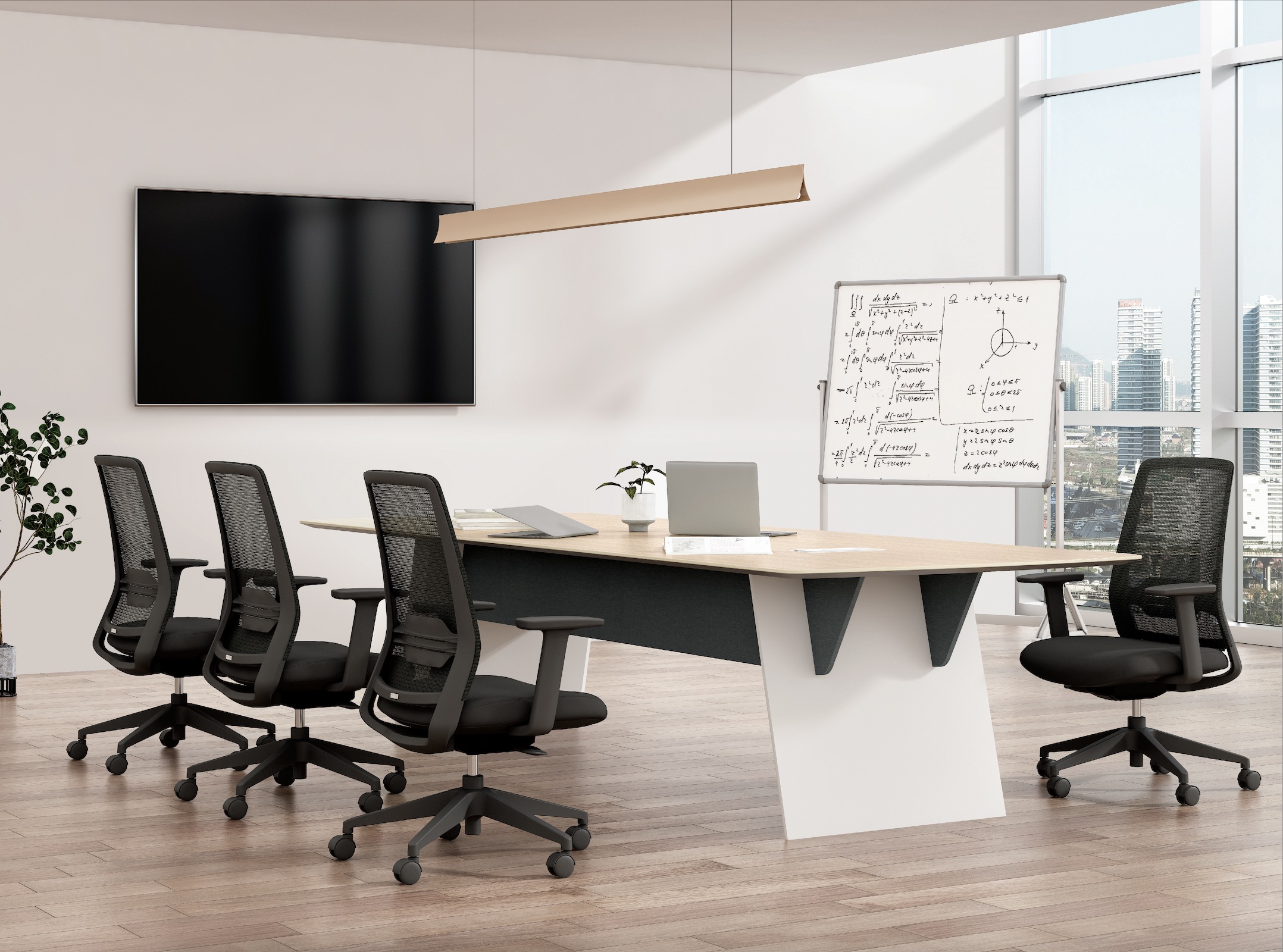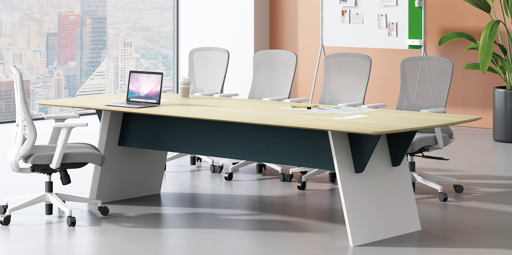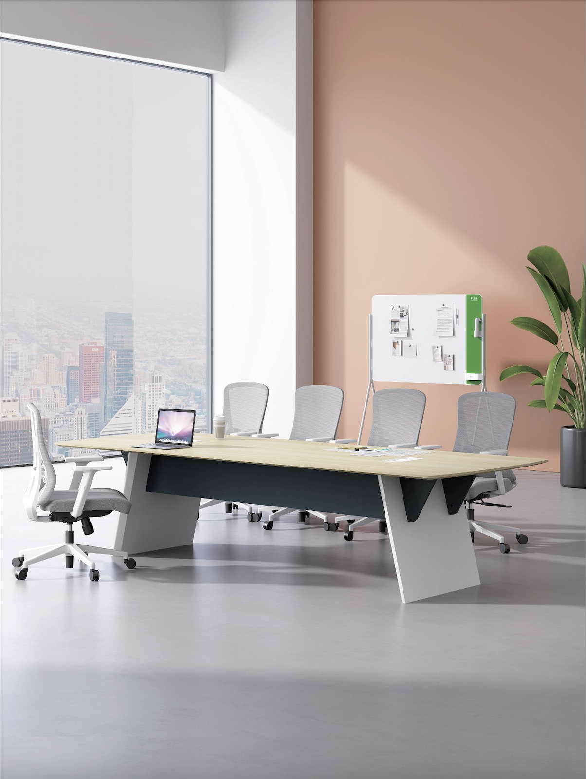 全板系列会议桌为现代办公空间提供了不同颜色材质和多种台面的分格设计,它可以是稳重大气的商务会议,也可以是现代时尚的愉悦洽谈,赋美会议洽谈桌是简洁实用的,为办公环境中的会议洽谈提供了最为人性化的解决方案。